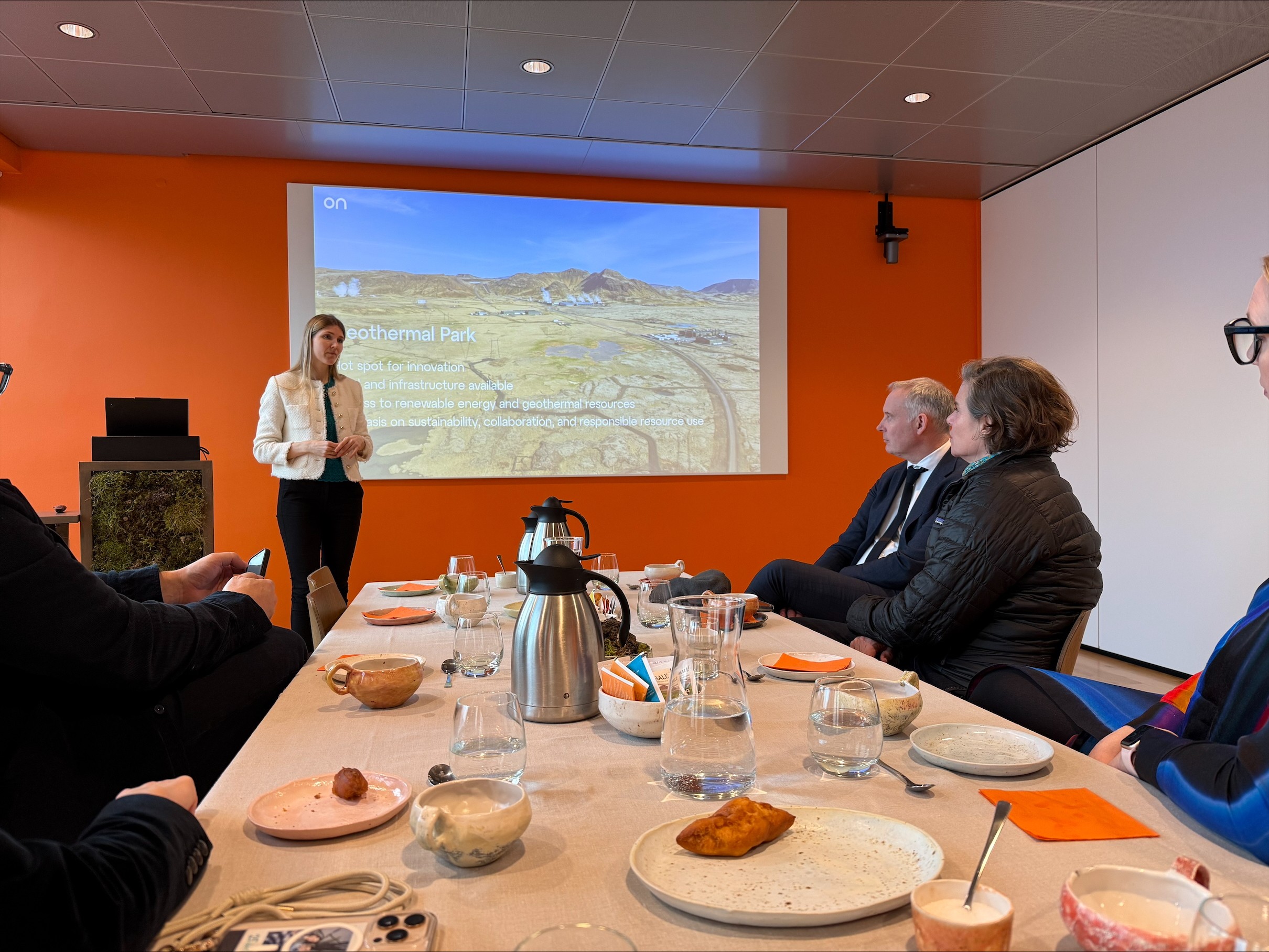 Í heimsókninni hitti hún Sævar Frey Þráinsson, forstjóra Orkuveitunnar, Margréti Lilju Hrafnkelsdóttur, viðskiptaþróunarstjóra Orku náttúrunnar, Valgerði B. Eggertsdóttur, leiðtoga hagaðilatengsla og sjálfbærni hjá ON, og Eddu Sif Pind Aradóttur, framkvæmdastjóra Carbfix, og fékk hún kynningu á starfsemi Orkuveitunnar, ON og Carbfix og fór auk þess í vettvangsferð að niðurdælingarholu.